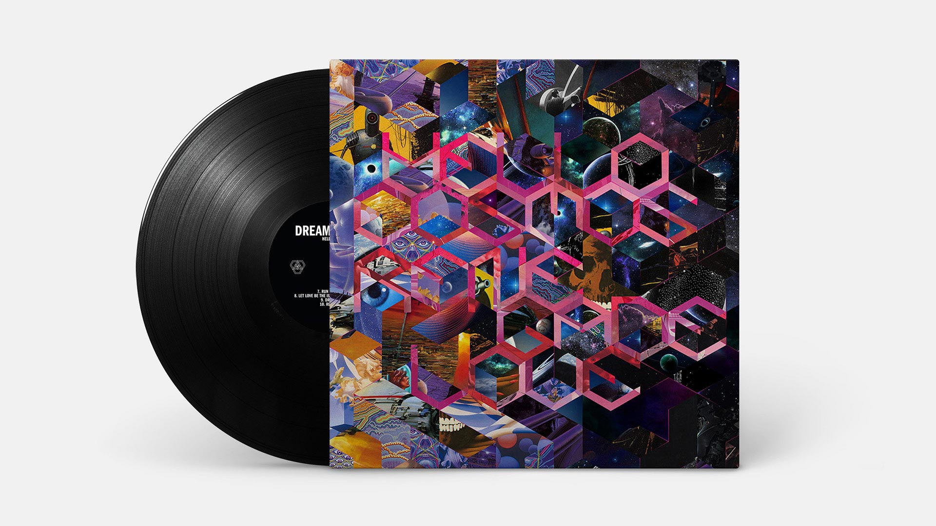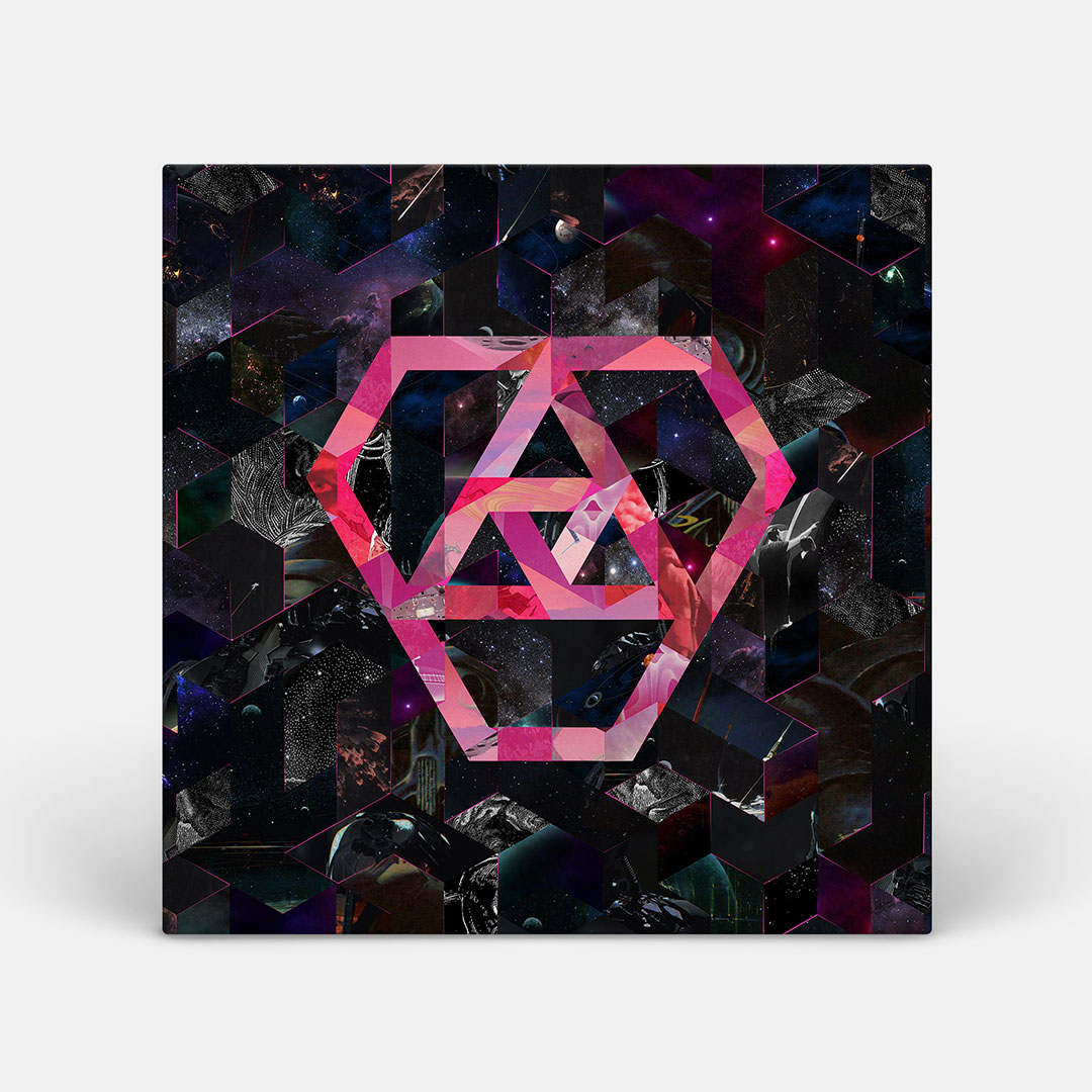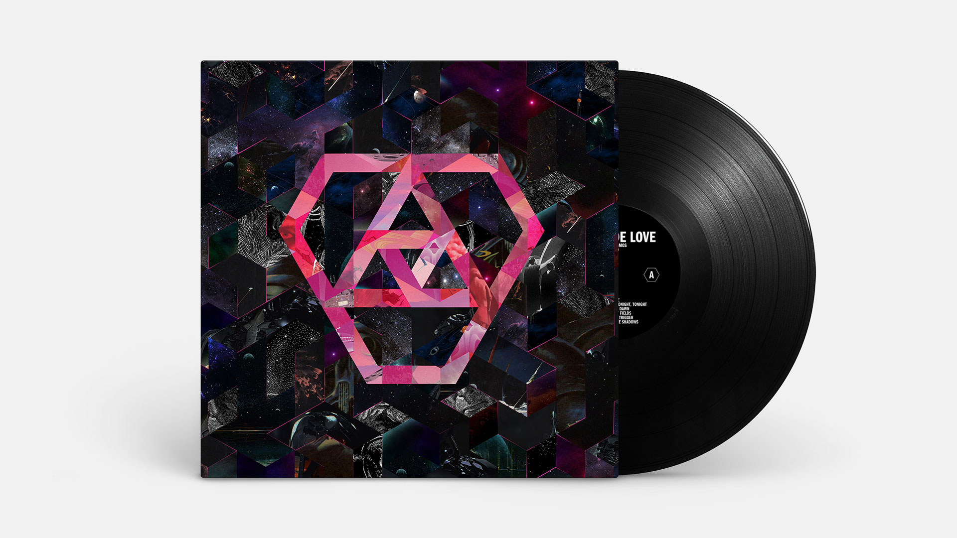 We were tasked to design a “cosmic, retro-futurist” identity and art-direction which eventually included a wordmark, several artworks for singles, an album design and even a music video. Taking inspiration and reference from their own lyric ‘cosmic glue’ we developed a concept which explored platonic solids which ultimately became the basis of our own design system and process for creative output right across the project.